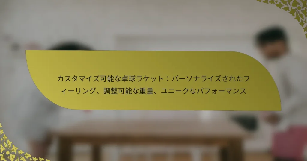 卓球ラケットのパーソナライズされたフィーリングは、ゲームプレイに大きな影響を与える可能性があります。カスタマイズにより、プレイヤーはグリップスタイル、ハンドルの形状、ラケットの厚さを選択でき、これらはプレイ中の快適さとコントロールに寄与します。手にフィットするラケットは、自信とパフォーマンスを高めることができます。